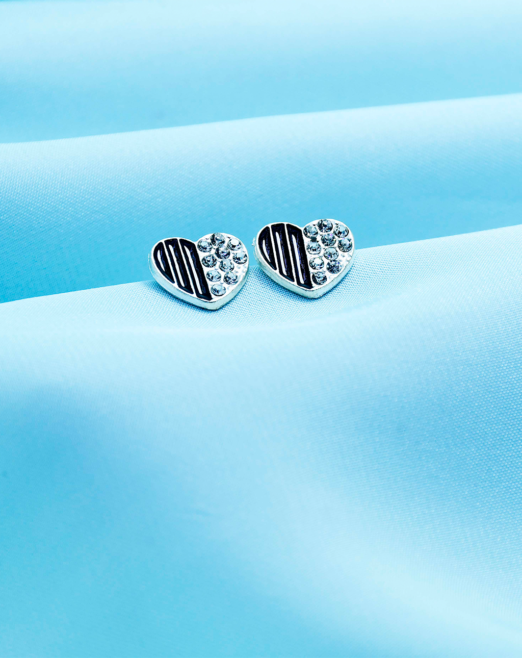 Stylish heart-shaped tops / earrings are made in a very exciting combination of black and white stripes, which is decorated with sparkling cubic zirconia stones. Bold and modern design gives personality to an outfit. Lightweight construction allows comfortable wear during the whole day.