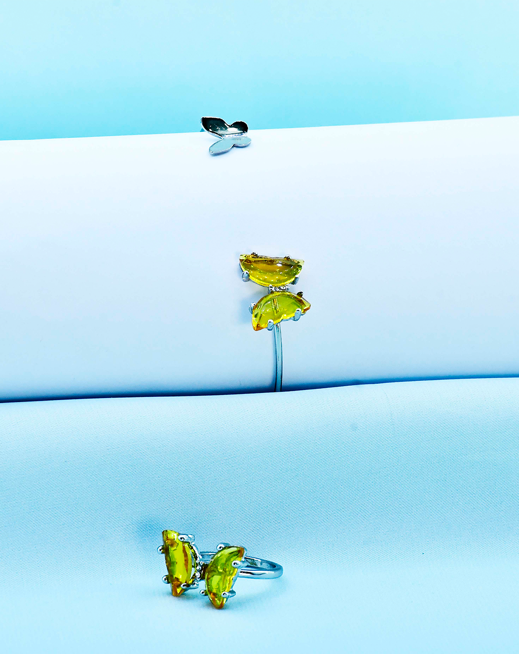This elegant set consists of a pair of butterfly-inspired pieces: a ring and a bracelet. The cut Yellow stones have given both of these pieces an air of mystery and sophistication. Delicate butterfly design in silver tone will give a modern look with a style. It is a perfect set to add some whimsy to any outfit.