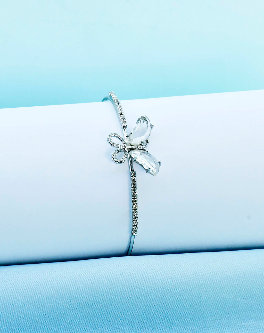 Butterfly Silver Bangle-White